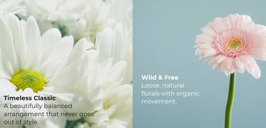 Loose, natural florals with organic movement.